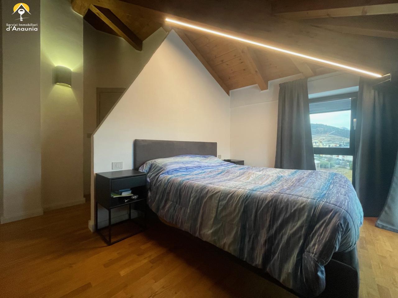 SANZENO fraz. BANCO Proponiamo in Esclusiva casa singola di 627 mq commerciali sviluppata su 4 livelli. L'immobile è attualmente composto da un appartamento duplex sviluppato tra primo e secondo piano e così distribuito: A primo piano: scale esterne con relativo poggiolo, ingresso, salotto, cucina abitabile , bagno finestrato, ripostiglio e scale di collegamento al piano superiore. A secondo piano: cinque camere di cui una singola, una allo stato grezzo e tre matrimoniali di cui una attualmente arredata come singola doppia ed infine il secondo bagno finestrato. Sia da primo che da secondo piano si ha accesso alla restante parte della casa attualmente ad uno stato grezzo da sviluppare in funzione di un eventuale ampliamento dell'appartamento o come potenziali nuove unità abitative. A piano terra competano l'abitazione cinque ampie cantine ad avvolti come spazi pertinenziali, giardino di circa 200 mq di cui 110 recintati antistante alla casa e legnaia. Riscaldamento a gasolio. Classe energetica G.